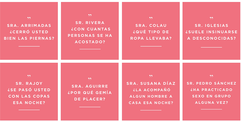 Campaña de titulares basados en preguntas reales de juicios por violación.
